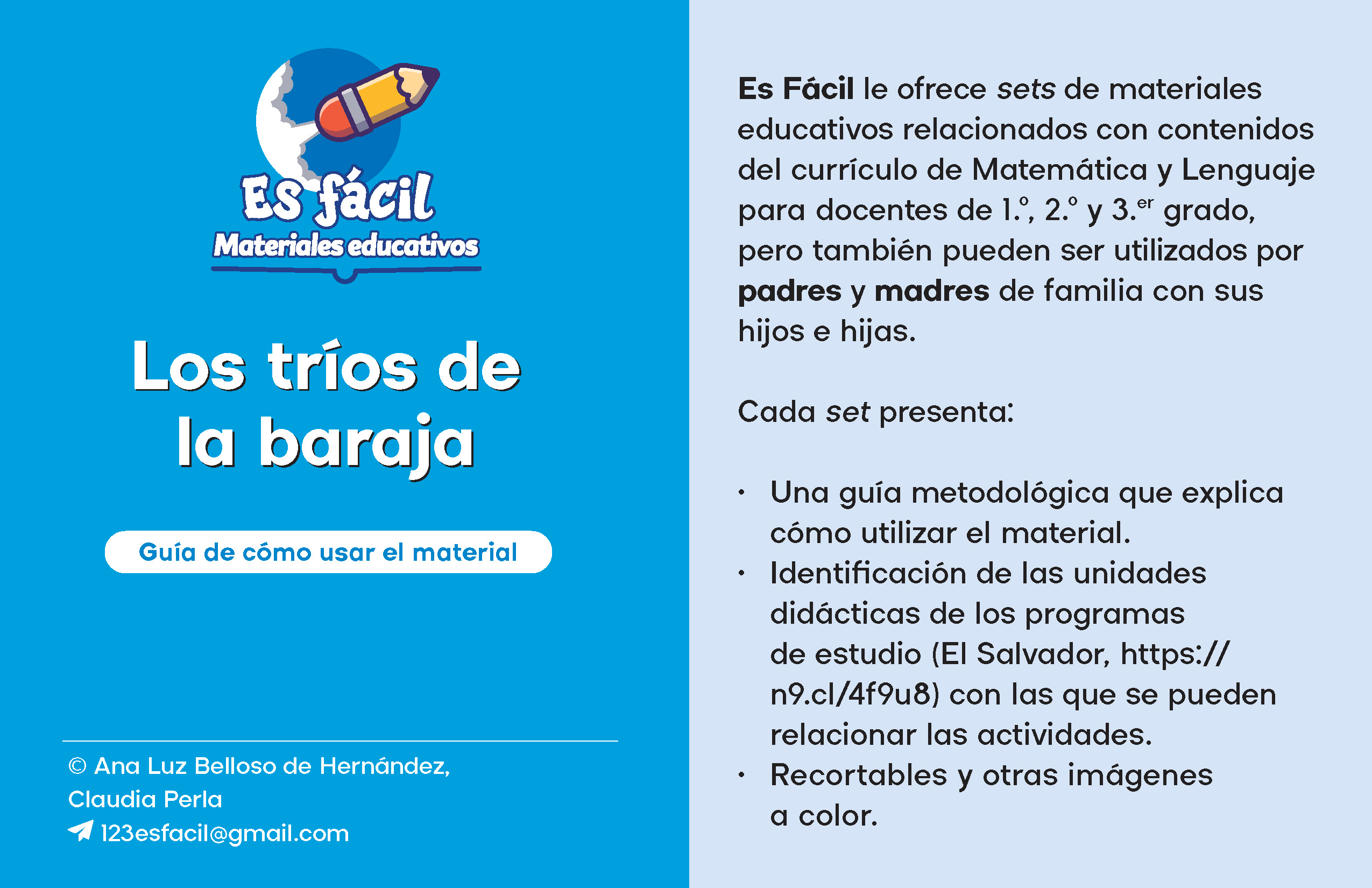 Está pensada para grupos de 60 estudiantes o menos. Cada maestro utilizará la cantidad de tríos necesaria según el tamaño de su clase.