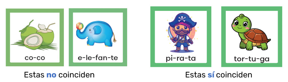 Si los niños aún no saben leer, pueden guiarse por la cantidad de guiones en las palabras: si tiene uno, será bisílaba; si tiene dos, será trisílaba.